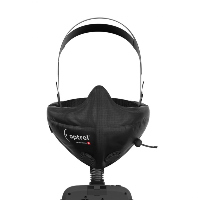 The central element of optrel's Swiss Air Blower respiratory protection system is a ventilated half mask that completely covers the mouth and nose area and supplies it with purified air. An air space is created around the mouth and nose which, thanks to the overpressure, facilitates breathing for the user and eliminates strenuous breathing resistance.