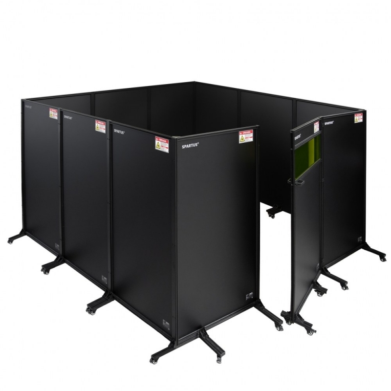 The complete SPARTUS® PROTECT protective enclosure is a ready-made solution designed specifically for laser class 4 workstations. With dimensions of 3360 × 3300 mm and a height of 2000 mm, it allows for the quick and safe creation of a dedicated work zone, providing optical protection in accordance with current safety standards. It is an ideal choice for companies looking for a professional, ready-to-use enclosure without the need to design a custom structure.